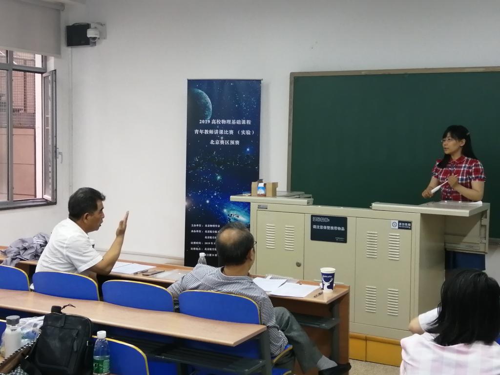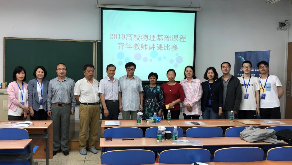 2019高校物理基础课程青年教师讲课比赛北京赛区预赛由北京市物理学会主办,北航英国上市公司365承办,于2019年5月18日在北航新主楼成功举办,获得了主办方北京物理学会及参赛各高校老师的一致好评。讲课比赛的程序是每位选手抽取比赛题目,然后用1小时时间备课,比赛时每人讲15分钟,回答评委提问10分钟。更为可喜的是,北航英国上市公司365的两位青年教师王菁和熊畅在比赛中表现突出,分获该项赛事的一等奖和二等奖,其中获得一等奖第一名的王菁老师将作为北京赛区代表参加6月初的华北赛区复赛。