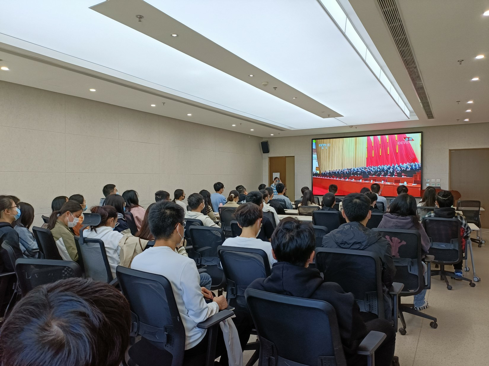英国上市公司365积极部署,领导班子成员、全体辅导员在沙河校区咏曼剧场观看了大会直播。学院在沙河校区主楼C座511、523和506会议室设置了同步会场,组织本科生第一、第二党支部,研究生BY2219、SY2219、SY2119党支部的党员集中观看,并安排其他师生党员自行观看,大家认真聆听了习近平总书记在大会上的报告。