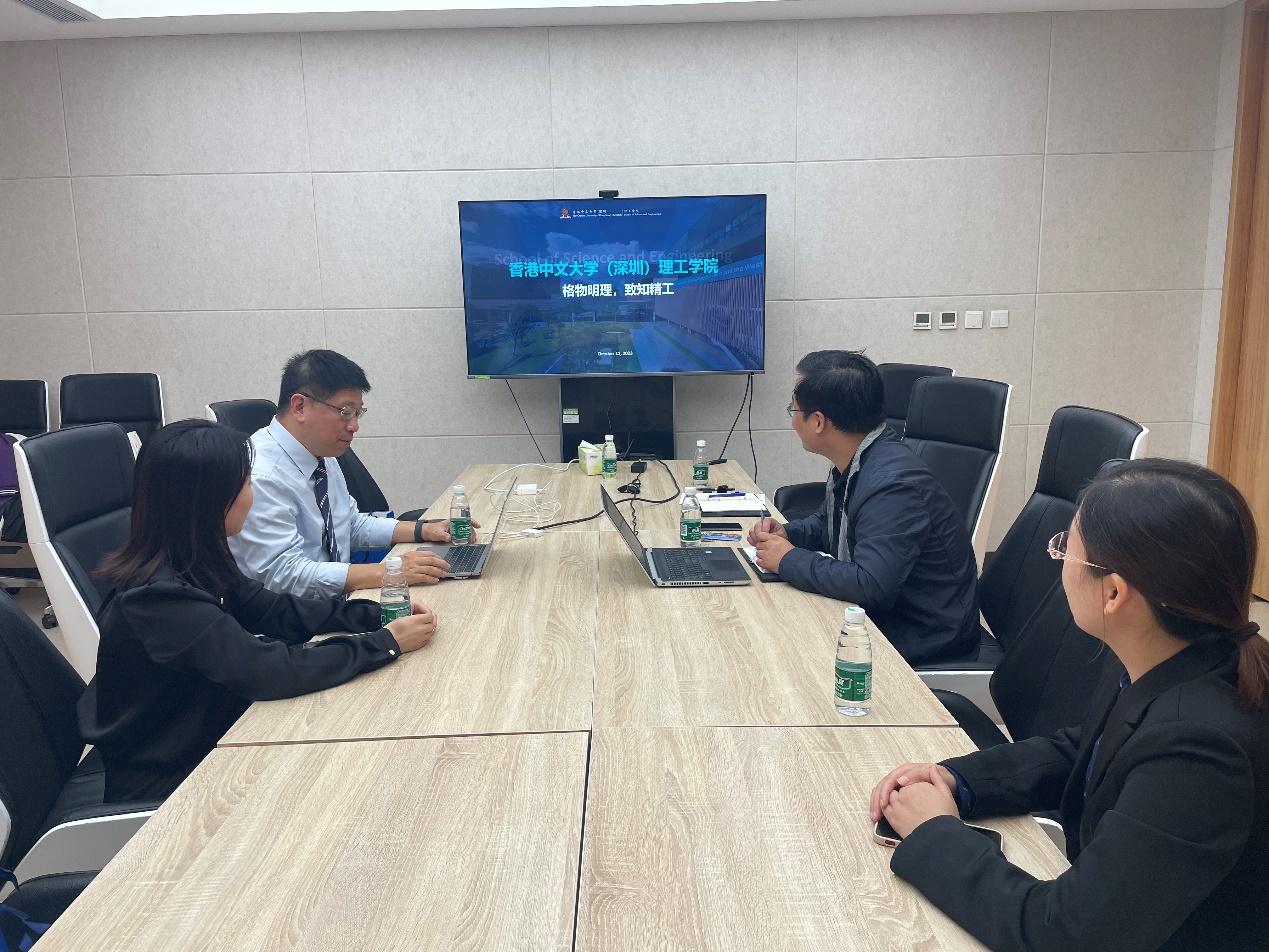 10月18日下午,香港中文大学(深圳)理工学院院务主任方奕森、院务主管蒋妮一行来我院调研,学院党委副书记齐建立、党政办主任荣翠华、研究生辅导员焦振威参加调研座谈。