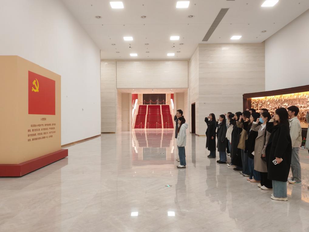 活动伊始,全体党员面向鲜红党旗,高举右拳,庄严宣誓。“我志愿加入中国共产党,拥护党的纲领,遵守党的章程……”铿锵誓言回荡在展厅内,凝聚着新时代青年科技工作者赓续红色血脉、勇攀科研高峰的坚定信念。博士党员张梦琦凝视党旗,神情坚毅:“前辈党员用一生践行‘为党和人民牺牲一切’的誓言,我们青年党员要把入党誓词镌刻在科研攻关的第一线,用科技创新践行对党的忠诚承诺。这是共产党员的信仰,更是物理人的时代答卷!”