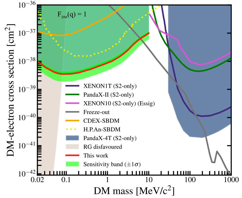 PandaX-4T的数据对低质量暗物质与电子散射截面的约束上限,对Freeze-out暗物质模型进行了有效的检验