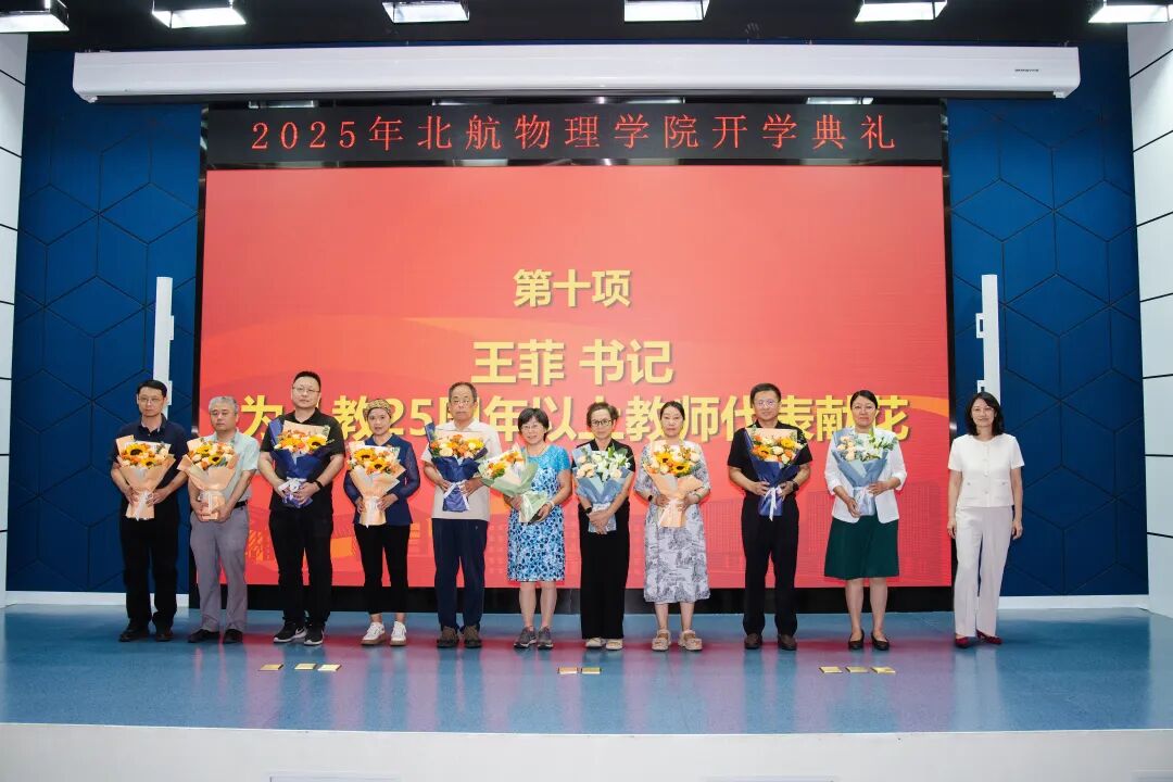 我国第41个教师节之际,学院党委书记王菲代表全体师生,向从教满二十周年的教师代表敬献鲜花。师生以简朴而庄重的方式,向把青春和岁月都奉献给教学的教师们致敬。希望新北航物理人传承这份精神,努力成长为能担当、肯奉献、勇创新的栋梁之才,让教师们的心血汇聚成民族复兴的强大力量。