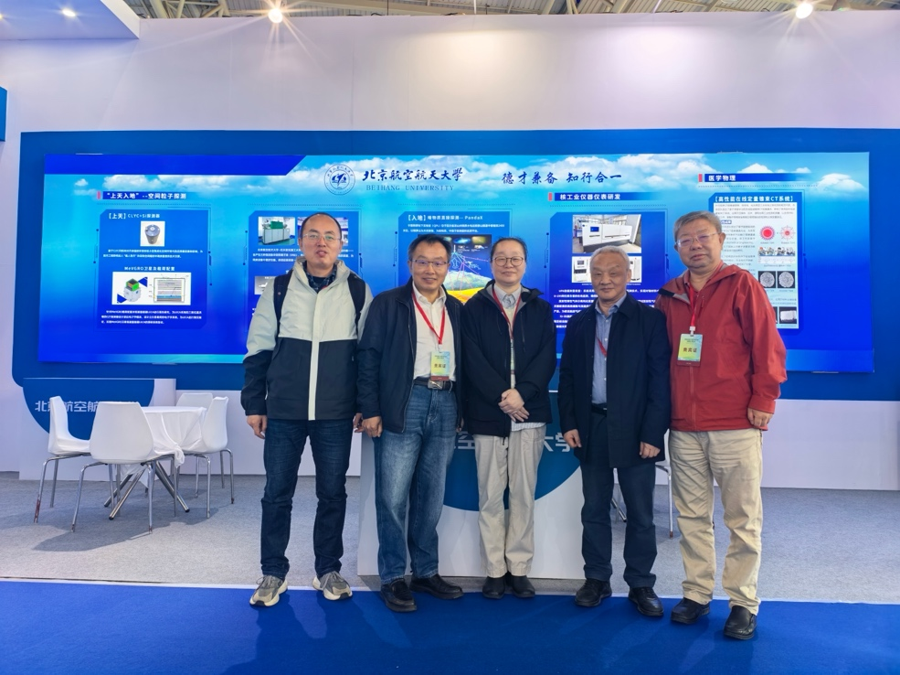 在展台区,学院重点展示了其在核技术开发与应用方面的核心成果:涵盖航天、地下、工业、医学等多维度领域。空间粒子探测器的研制,标志着“上天”任务中核技术的突破;参与深地实验室暗物质探测实验,实现“入地”应用场景的延伸;核工业仪器仪表的研发,如 UF₆ 容器在线监测装置、放射性惰性气体分离纯化系统、Kr-85 监测设备,填补了核安全与监测关键环节的技术空白;面向医学物理与无损检测领域的在线定量锥束 CT 系统,配合深度学习算法推进核影像设备的产业化。总体而言,学院将尖端探测技术、系统工程设计、应用场景对接有机融合,彰显了“从核心元器件研发 → 系统装备集成 → 应用端落地”的发展路径。