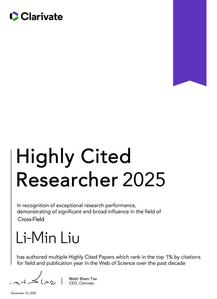 刘利民教授团队长期深耕新材料物理领域,聚焦能源材料与铁电薄膜等前沿方向,累计在Nature, Nat. Energy,Nat. Catal.,Nat. Nanotechnol.,Nat. Photonics等国际期刊发表论文200余篇,总被引量2万多次(h-index达79)。刘利民教授过去十一年来持续入选爱思唯尔“中国高被引学者”榜单,此次首度跻身科睿唯安交叉领域榜单,进一步印证其跨学科研究的国际影响力。