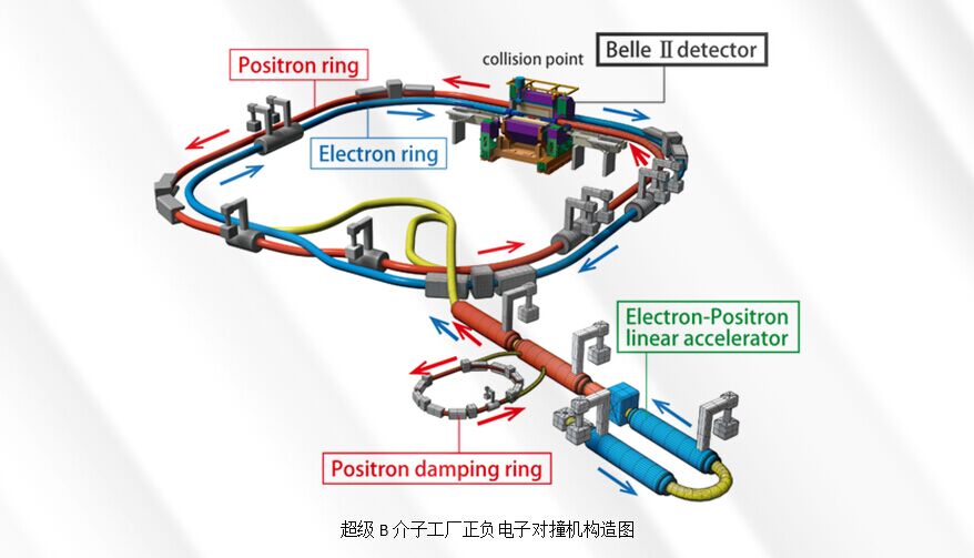 自2010年下半年以来,SuperKEKB在原先KEKB加速器的基础上进行了数年的升级改造。2016年2月1日, KEK对SuperKEKB进行了调试。2月10日,SuperKEKB成功地实现正电子束流注入并存储;两周后,电子束流也被成功注入并存储。