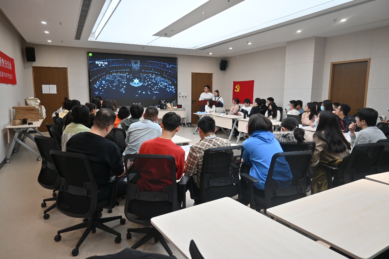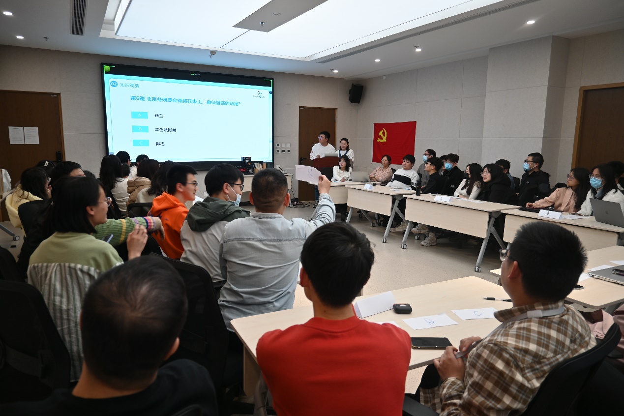 本次主题党日活动以知识竞赛形式开展,5-6人为一组进行答题,比赛一共分为两轮。第一轮为10道必答题,各组同时作答,积分排名前四名的小组进入第二轮争霸赛,通过8道抢答题争夺胜负。比赛过程精彩激烈,各组选手相互配合,答题快速精准,现场参与氛围高涨。